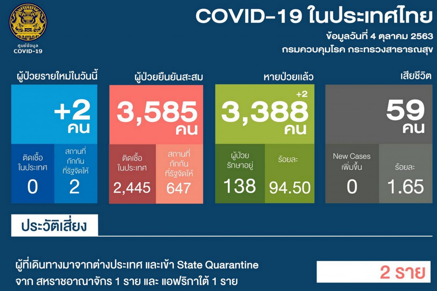 ศบค.เผยผู้ติดเชื้อโควิดใหม่ 2 ราย ยอดทั่วโลก 35,127,596 คน
