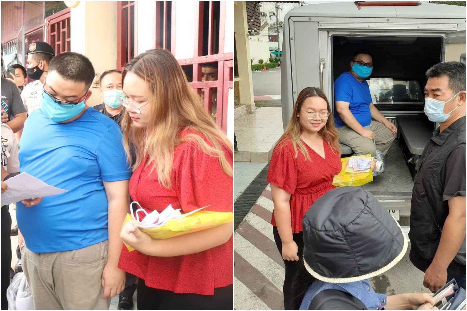 ขณะที่ ศาลพิจารณาคำร้องและเหตุความจำเป็นแล้ว อนุญาตให้ฝากขังผู้ต้องหาทั้งสอง โดยอนุญาตให้ฝากขังครั้งแรกเพียง 7 วัน ตั้งแต่วันที่ 21-27 ต.ค.นี้ จากนั้นผู้ต้องหาทั้งสองได้ยื่นคำร้องขอปล่อยชั่วคราว ซึ่งมีนายประจักษ์ ก้องกีรติ อาจารย์คณะรัฐศาสตร์ ม.ธรรมศาสตร์ และนายเอกสิทธิ์ หนุนภักดี อาจารย์คณะสังคมวิทยาและมานุษยวิทยา ม.ธรรมศาสตร์ ใช้ตำแหน่งทางวิชาการยื่นประกันตัว
