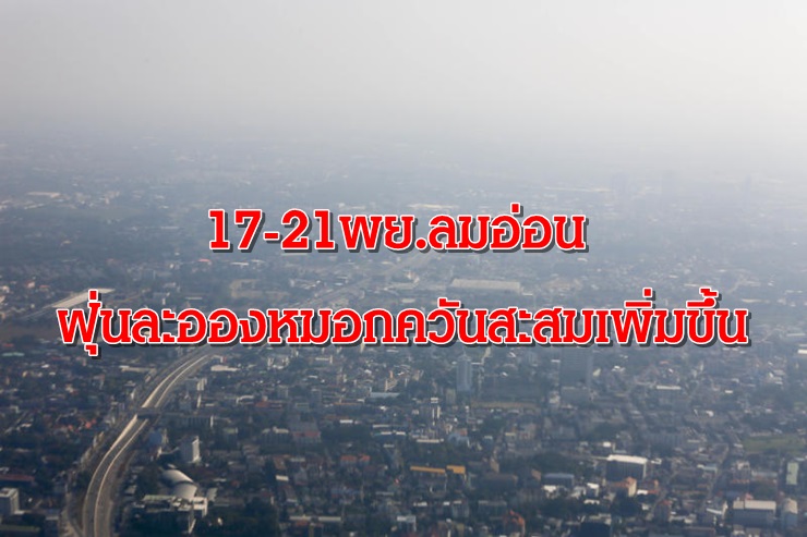 อุตุฯ เผย 17-21 พย. ฝุ่นละออง หมอกควันสะสมเพิ่มขึ้น