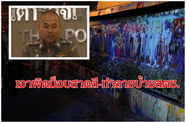 ตร.จ่อเอาผิดม็อบสาดสี-ทำลายป้ายสตช.