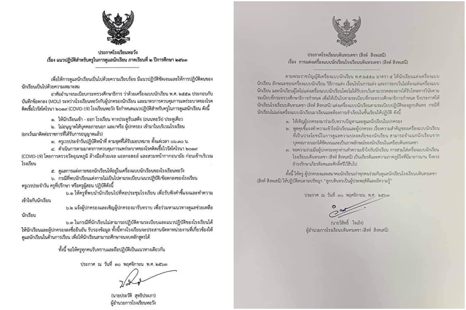 หลายโรงเรียนออกประกาศย้ำให้นักเรียนต้องแต่งเครื่องแบบมาเรียนตามระเบียบ หากไม่ปฏิบัติตามจะเชิญผู้ปกครองมาร่วมพูดคุยเพื่อดูแลนักเรียนต่อไป