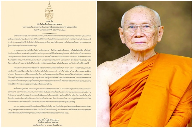 สมเด็จพระสังฆราช มีพระดำรัสเนื่องในวันคล้ายวันพระบรมราชสมภพ ร.9 ทรงแนะคนไทยศึกษา "ทศพิธราชธรรม"
