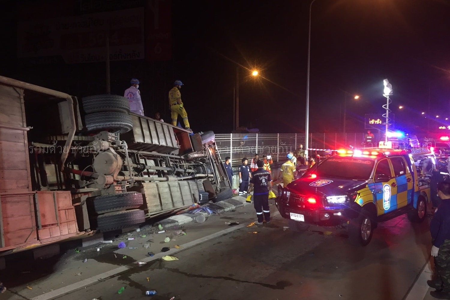 รถบัสคณะหมอลำพลิกคว่ำ! มอเตอร์เวย์ ตาย2เจ็บ28