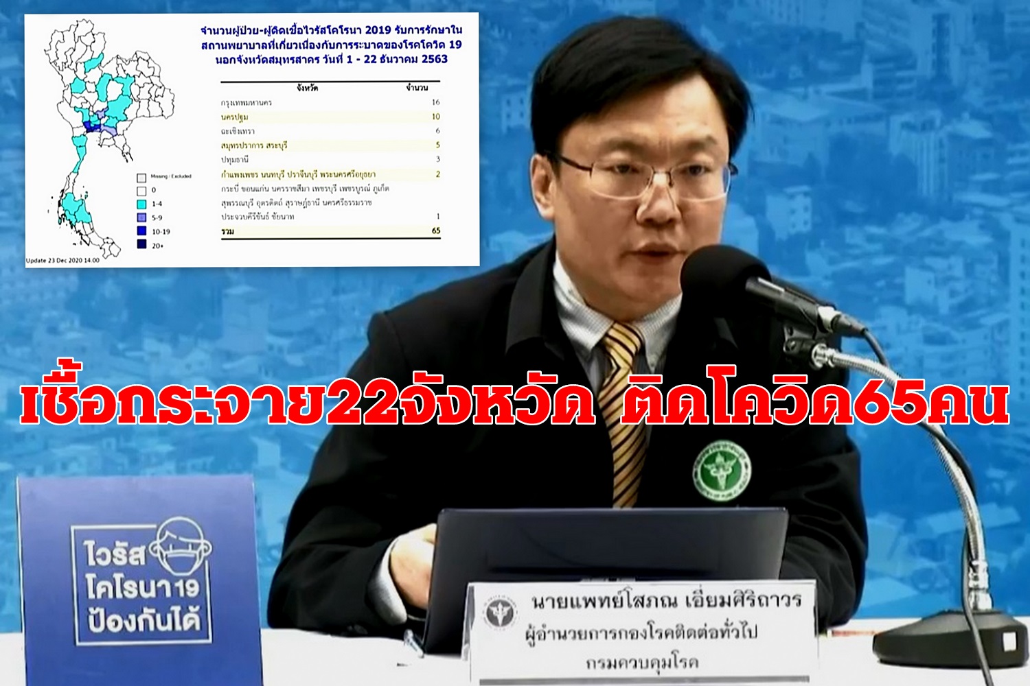 ศบค.แถลงเชื้อโควิด-19จากสมุทรสาครกระจายไป 22จังหวัด จำนวนยอดผู้ติดเชื้อล่าสุด 65ราย