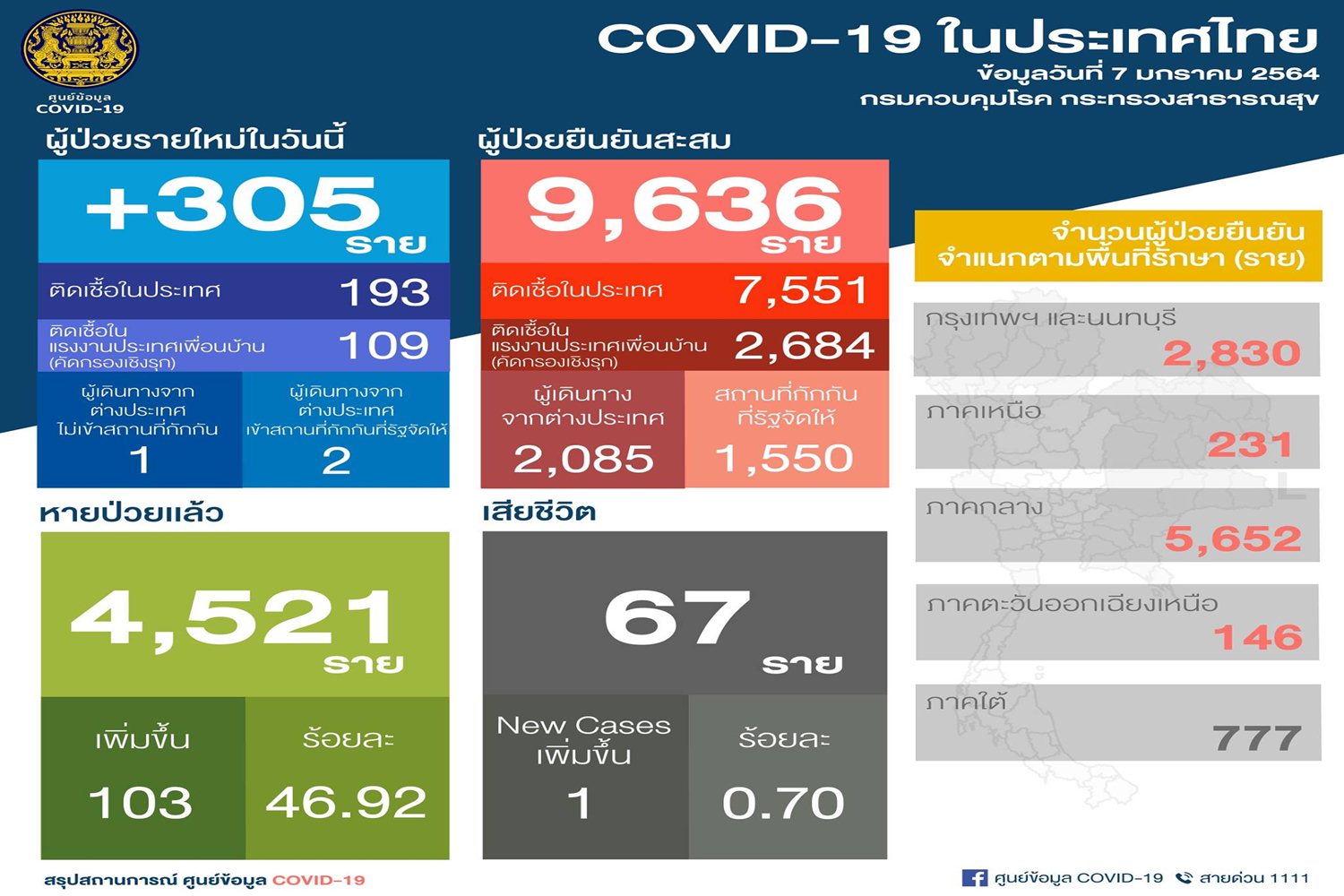 ไทยติดโควิดใหม่305ราย ดับอีก1 รักษาหายเพิ่มกว่า100