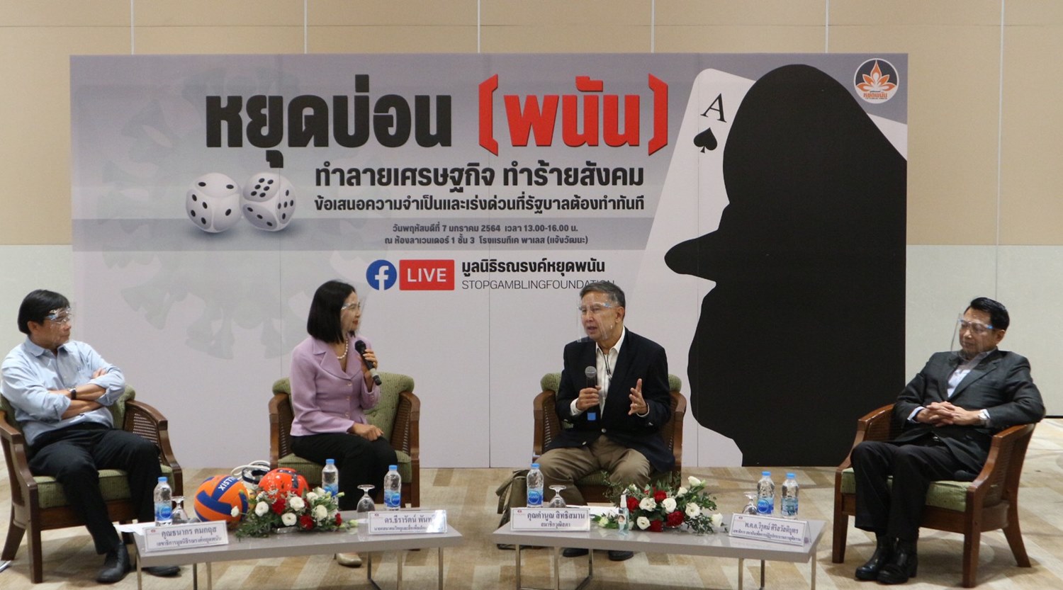 เมื่อวันที่ 7 ม.ค. มูลนิธิรณรงค์หยุดพนันจัดเสวนา เรื่อง “หยุดบ่อน (พนัน) ทำลายเศรษฐกิจ ทำร้ายสังคม” โดยมี นายคำนูณ สิทธิสมาน สมาชิกวุฒิสภา รศ.นวลน้อย ตรีรัตน์ ผอ.ศูนย์ศึกษาปัญหาการพนัน จุฬาลงกรณ์มหาวิทยาลัย พ.ต.อ.วิรุตม์ ศิริสวัสดิบุตร เลขาธิการสถาบันเพื่อการปฏิรูปกระบวนการยุติธรรม และ นายธนากร คมกฤส เลขาธิการมูลนิธิรณรงค์หยุดพนัน ร่วมเสวนา