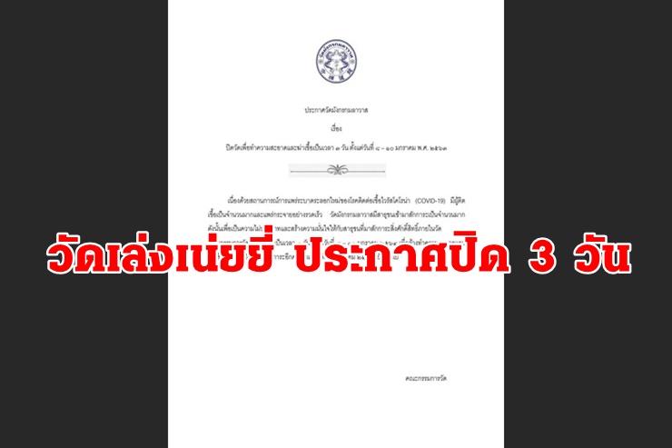 วัดเล่งเน่ยยี่ ประกาศปิด 3 วัน ทำความสะอาดฆ่าเชื้อโควิด19
