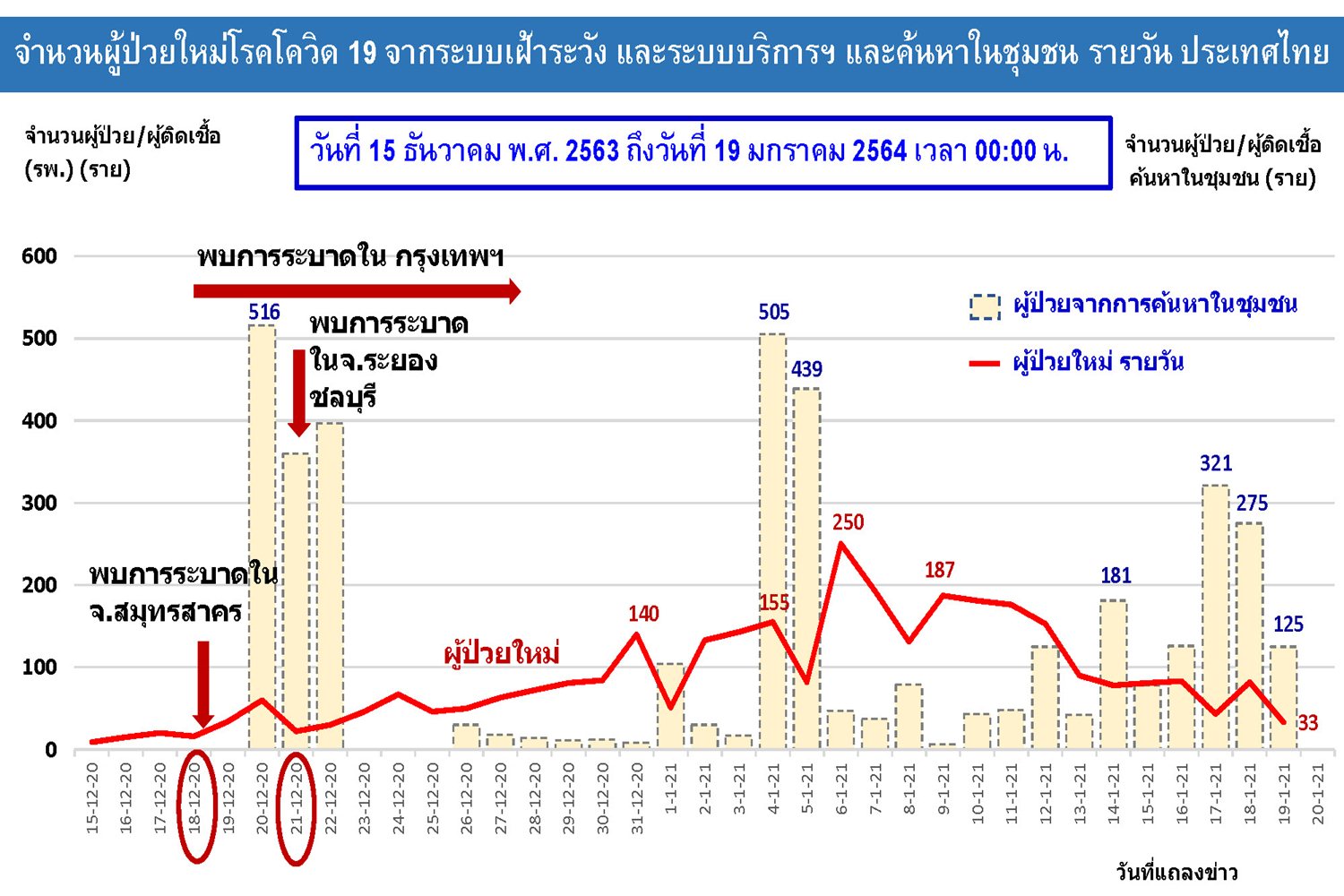 เมื่อวันที่ 19 นพ.ทวีศิลป์ วิษณุโยธิน โฆษกศูนย์บริหารสถานการณ์ โควิด-19 หรือ ศบค. กล่าวระหว่างการแถลงสถานการณ์ระบาดของเชื้อไวรัสโควิด-19ประจำวันถึงประเด็นสถานการณ์ภาพรวมของการระบาดในปัจจุบันว่า ที่ประชุมคณะกรรมการศูนย์ปฏิบัติการภาวะฉุกเฉินทางสาธารณสุข (EOC) และ ศบค. ยังมีความเป็นห่วงต่อสถานการณ์โควิดภายในประเทศ 3 จุดสำคัญ คือ สมุทรสาคร, กรุงเทพฯ และชายแดนใต้