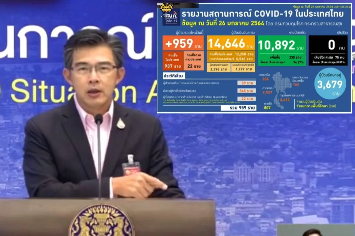 ศบค.แถลงไทยพบผู้ป่วยโควิด-19 รายใหม่ 959 ราย ส่วนใหญ่มาจากการค้นหาเชิงรุกในจังหวัดสมุทรสาคร ผู้ติดเชื้อได้รับการรักษาหายเพิ่ม 230 ราย