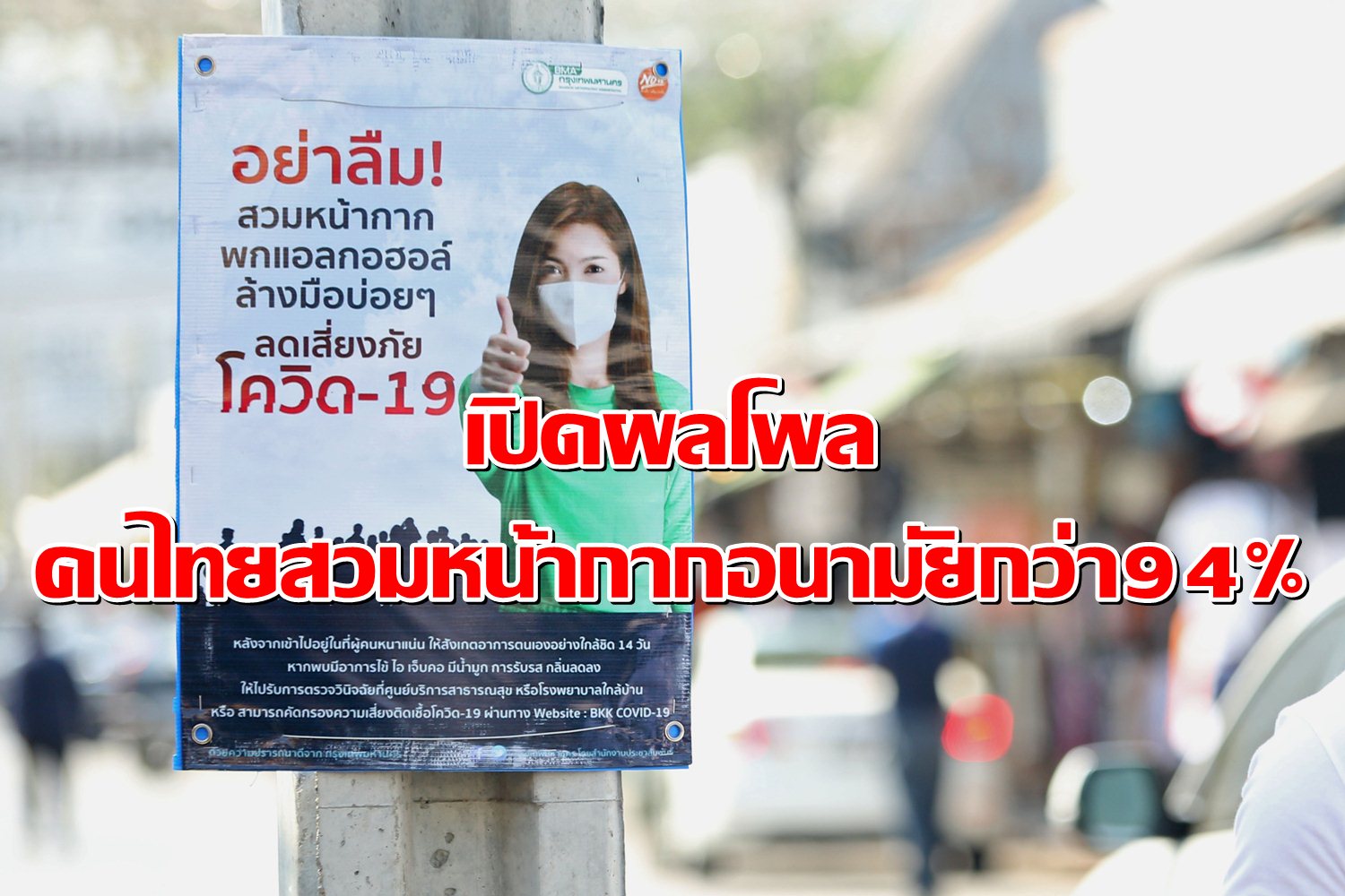 เปิดผลสำรวจอนามัยโพล พบคนไทยสวมหน้ากากอนามัยกว่า94%