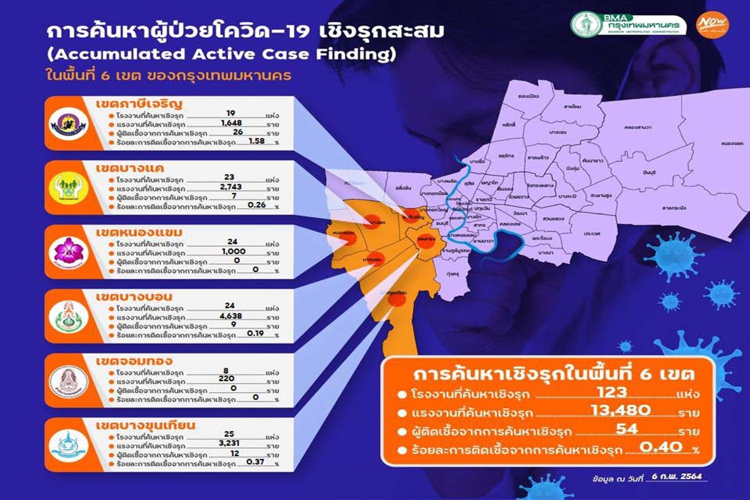 กรมควบคุมโรคทำงานโดยอาศัยสถิติและการเรียนรู้เชิงวิชาการเป็นหลัก โดยกทม.กำหนดให้โรงงานเป็นหนึ่งในพื้นที่คัดกรองเชิงรุก มีการตรวจคัดกรองโรงงานใน กทม.ไปแล้ว 123 แห่ง ตรวจพนักงานไปแล้ว 13,480 ราย พบผู้ติดเชื้อ 54 ราย คิดเป็น 0.4 เปอร์เซ็นต์