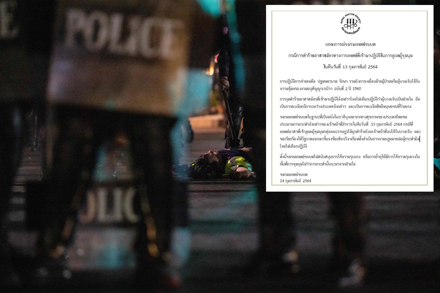 "ชมรมแพทย์ชนบท" ออกแถลงการณ์ประณามเจ้าหน้าที่ตำรวจทำร้ายอาสาสมัครทางการแพทย์ ย้ำไม่สนับสนุนการใช้ความรุนแรงไม่ว่าจะมาจากฝ่ายใด