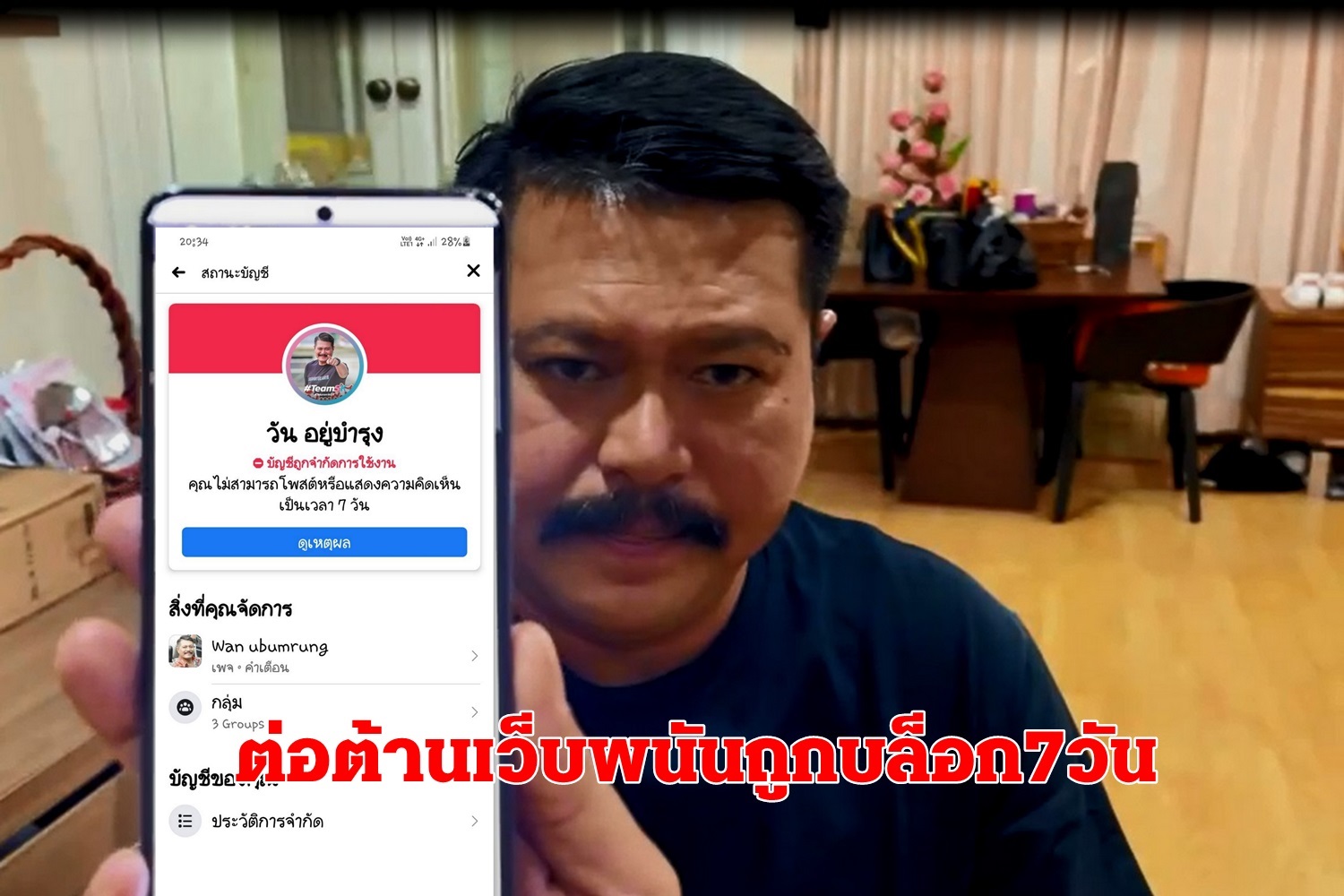 "วัน อยู่บำรุง"งงทำผิดอะไร หลังประจานคนแชร์ชวนเล่นเว็บพนันออนไลน์แต่กลับถูกเฟซบุ๊กบล็อคใช้งาน7วัน
