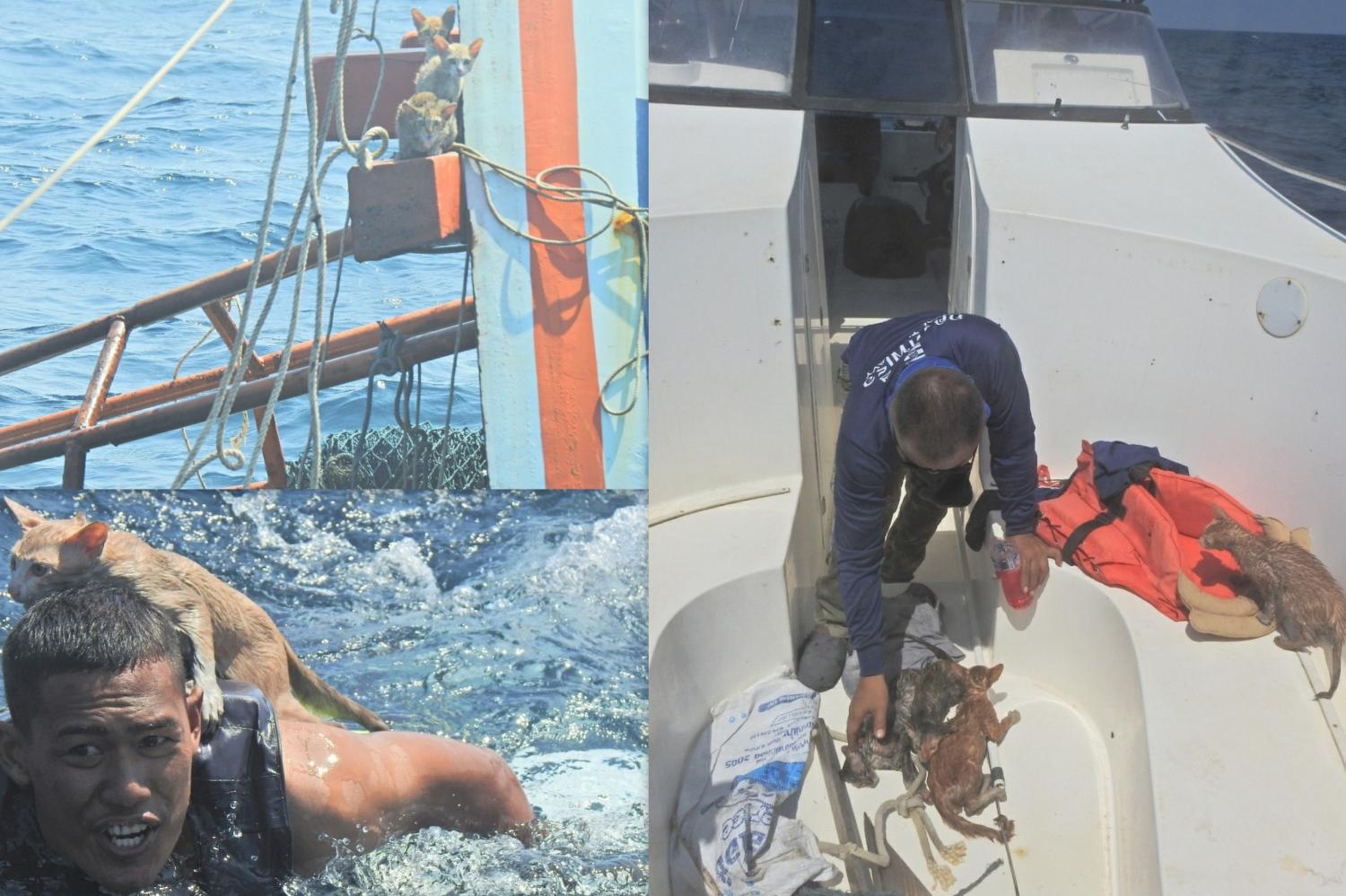 สังคมออนไลน์ชื่นชมเจ้าหน้าที่ช่วยเหลือแมว 4 ชีวิต ติดอยู่บนหัวเรือจมที่โผล่พ้นน้ำหลังไหม้กลางน่านน้ำสตูล