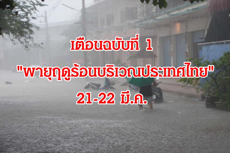 กรมอุตุฯ เตือนฉบับที่ 1 พายุฤดูร้อนบริเวณประเทศไทย มีผลกระทบ 21 - 22 มี.ค. ฝนคะนอง ลมแรง ลูกเห็บตกบางพื้นที่ เริ่มภาคอีสานก่อน