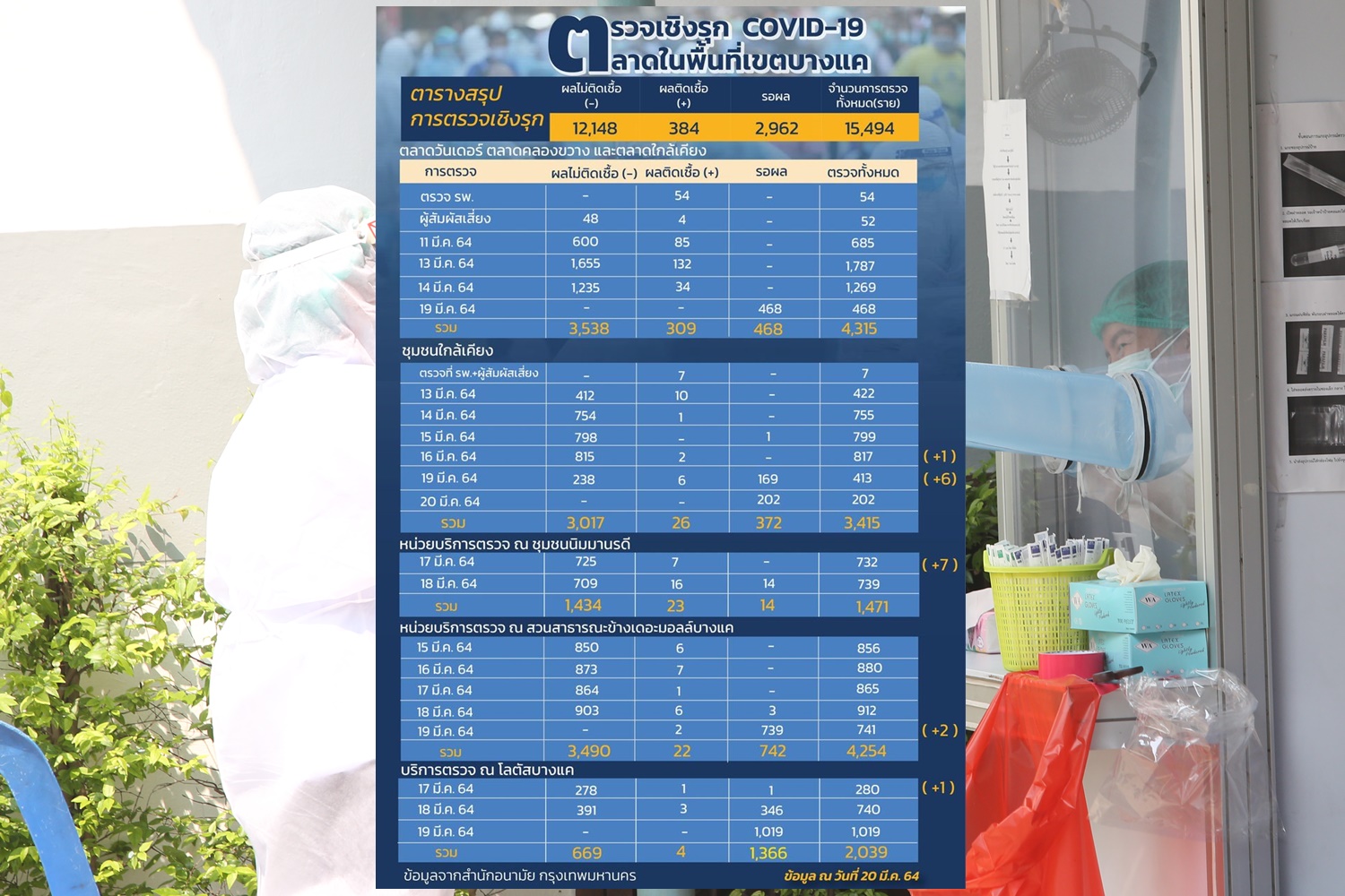 พบผู้ติดเชื้อรวม (+) 384 ราย ไม่ติดเชื้อรวม (-) 12,148 ราย รอผลการตรวจรวม 2,962 ราย