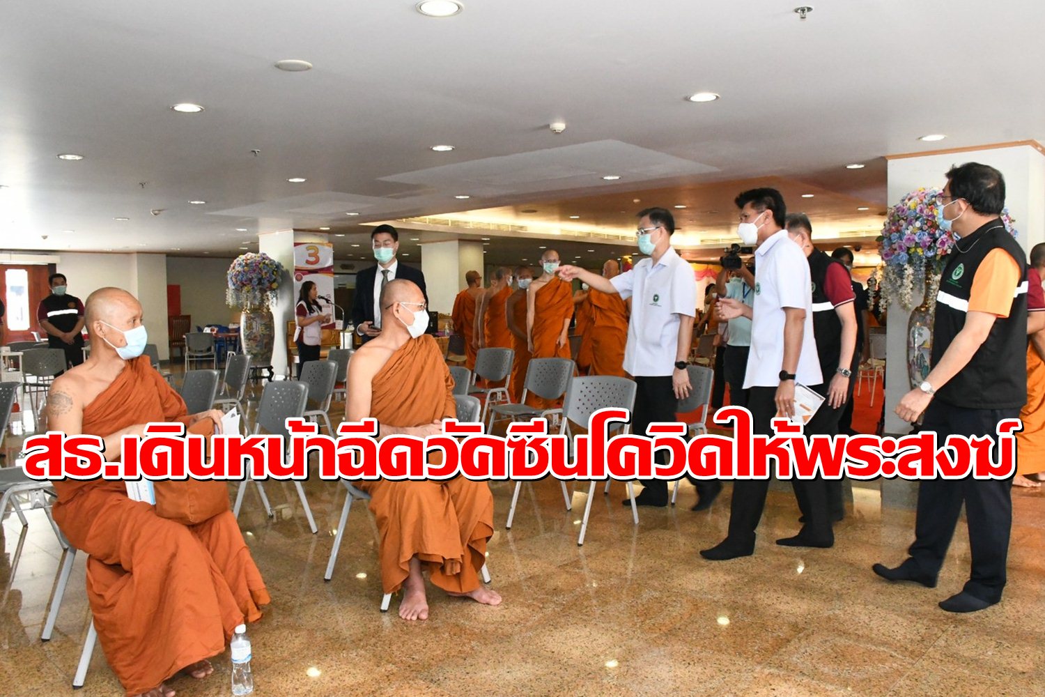 รมช.สาธารณสุขนำทีมบุคลากรทางการแพทย์ ถวายการฉีดวัคซีนโควิด 19 แด่พระสงฆ์จากวัดในกรุงเทพฯ เพื่อสร้างภูมิคุ้มกันโควิด 19