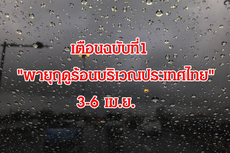 ประกาศกรมอุตุฯ ฉบับที่ 1 พายุฤดูร้อนบริเวณประเทศไทย ช่วง 3-6 เม.ย. ฝนคะนอง ลมแรง ลูกเห็บตกบางพื้นที่ เริ่มภาคอีสาน ตะวันออก ก่อน