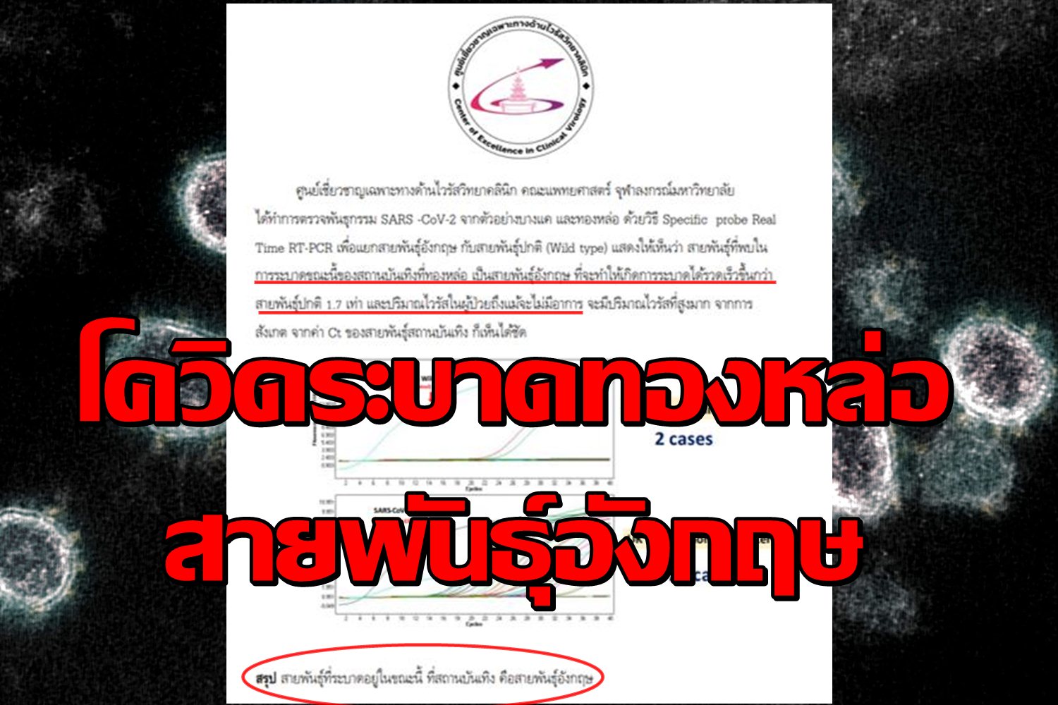 ทั้งนี้ศูนย์เชี่ยวชาญเฉพาะทางด้านไวรัสวิทยาคลินิก ภาควิชากุมารเวชศาสตร์ คณะแพทยศาสตร์ จุฬาลงกรณ์มหาวิทยาลัย รายงานว่า ได้ทำการตรวจพันธุกรรมเชื้อไวรัสโควิด-19 จากตัวอย่างบางแค และทองหล่อ เพื่อแยกสายพันธุ์อังกฤษ กับสายพันธุ์ปกติ พบว่า สายพันธุ์ที่ระบาดขณะนี้ของสถานบันเทิงที่ทองหล่อ เป็นสายพันธุ์อังกฤษ ที่จะทำให้เกิดการระบาดได้รวดเร็วขึ้นกว่า สายพันธุ์ปกติ 1.7เท่า และปริมาณไวรัสในผู้ป่วยถึงแม้จะไม่มีอาการ จะมีปริมาณไวรัสที่สูงมาก
