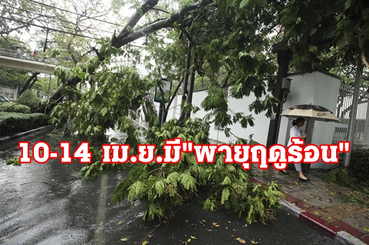 กรมอุตุฯ พยากรณ์อากาศ 7 วันข้างหน้า เตือน ไทยตอนบน ระวัง "พายุฤดูร้อน" ฝนคะนอง ลมกระโชกแรง กทม.ปริมณฑล ตกร้อยละ 40-60 ช่วงวันที่ 10-14 เม.ย.