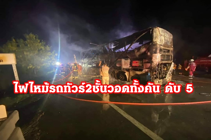 สลดรับสงกรานต์!ไฟไหม้รถโดยสารปรับอากาศ 2 ชั้น วอดทั้งคัน ดับ 5 เจ็บนับสิบ