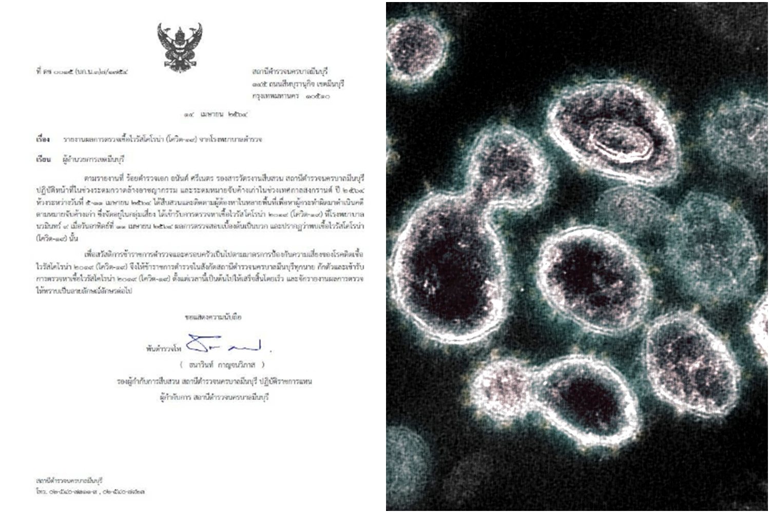 เมื่อวันที่ 15 เม.ย. 64 พ.ต.ท.ธนาวินท์ กาญจนวิภาส รองผู้กำกับการสืบสวน สถานีตำรวจนครบาลมีนบุรี ปฏิบัติราชการแทนผู้กำกับการสถานีตำรวจนครบาลมีนบุรี มีหนังสือถึงผู้อำนวยการเขตมีนบุรี เพื่อรายงานผลการตรวจเชื้อไวรัสโคโรน่า2019หรือโควิด-19จากโรงพยาบาลตำรวจ ระบุว่า ตามรายงานที่ ร.ต.อ.อนันต์ ศรีเนตร รองสารวัตรงานสืบสวน สถานีตำรวจนครบาลมีนบุรี ปฏิบัติหน้าที่ในช่วงระดมกวาดล้างอาชญากรรม และระดมหมายจับค้างเก่าในช่วงเทศกาลสงกรานด์ ปี2564 ห้วงระหว่างวันที่ 5-13 เมษายน 2564 เพื่อสืบสวนและติตตามจับกุมผู้ต้องหาในหลายพื้นที่มาดำเนินคดีตามหมายกฎหมาย ซึ่งจัดอยู่ในกลุ่มเสี่ยงและได้เข้ารับการตรวจหาเชื้อโควิด-19 ที่โรงพยาบาลนวมินทร์ 9 เมื่อวันอาทิตย์ที่ 11 เมษายน 2564 ผลการตรวจสอบเบื้องต้นเป็นบวก ปรากฎว่าพบเชื้อโควิด-19 นั้น