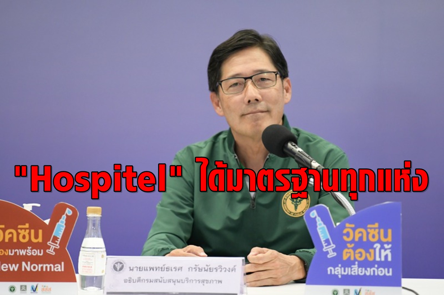 นายแพทย์ธเรศ กรัษนัยรวิวงค์ อธิบดีกรมสนับสนุนบริการสุขภาพ (สบส.) แถลงถึงมาตรการ Hospitel รองรับผู้ป่วยโควิด 19 ว่า ขณะนี้ ได้นำโรงแรมมาเป็นสถานพยาบาลชั่วคราว (Hospitel) ดูแลผู้ติดเชื้อโควิด 19 ที่ไม่มีอาการ หรือรักษาในโรงพยาบาลหลัก 3-5 วันแล้วอาการดี โดยมีการตรวจและบันทึกอาการผู้ป่วยทุกวันผ่านเทเลเมดิซีนหรือไลน์กลุ่ม หากอาการเปลี่ยนแปลงจะย้ายกลับโรงพยาบาลหลักทันที มั่นใจได้ว่าผู้ป่วยจะได้รับการรักษาพยาบาลตามมาตรฐาน