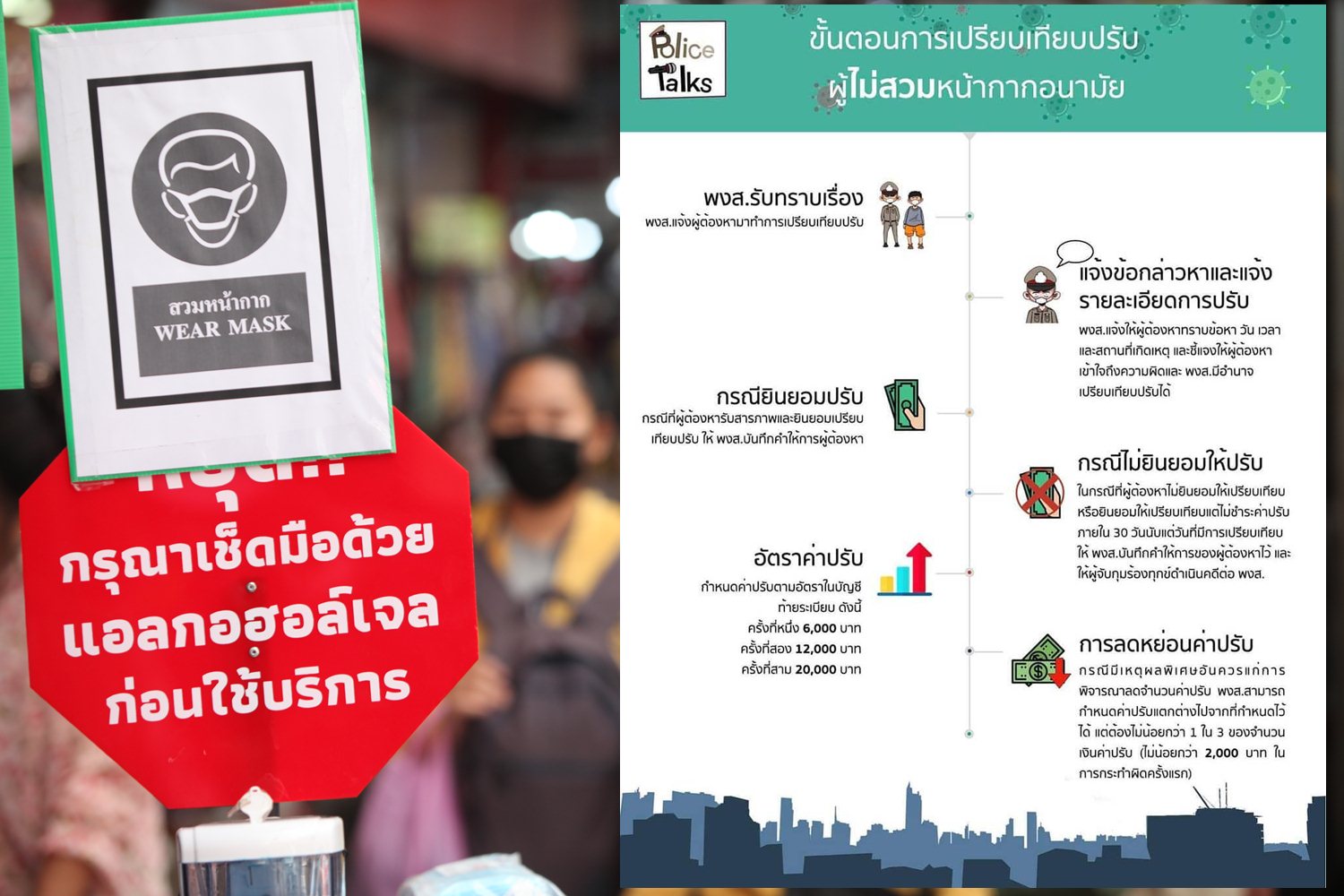 โฆษกตร. แจงโทษปรับไม่ใส่หน้ากากอนามัย ครั้งที่1 ปรับ 6,000 บาท ครั้งที่2ปรับ 12,000บาท ครั้งที่3เป็นต้นไปเจอ 20,000 บาท แจงหากมีเหตุอันควรสามารถลดค่าปรับได้ที่อัตราไม่น้อยกว่า 2,000 บาท