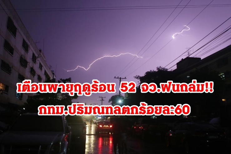 "พายุฤดูร้อน"ถล่ม!! 52 จว. ระวังฝน-ลมแรง-ฟ้าผ่า กทม.ปริมณฑล ตกร้อยละ 60