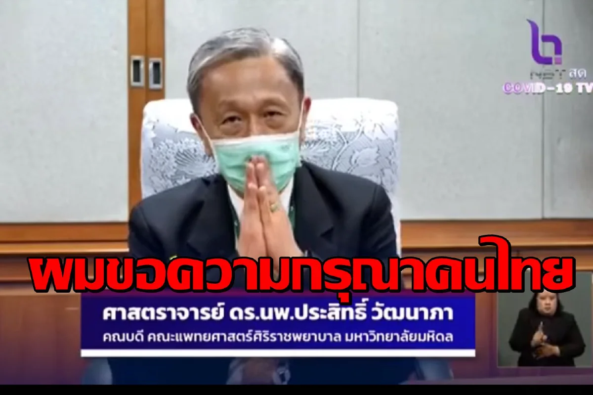 "ศ.ดร.นพ.ประสิทธิ์ วัฒนาภา" คณบดีคณะแพทยศาสตร์ศิริราช ขอคนไทยใส่หน้ากากตลอดเวลาไม่เว้นแม้อยู่ในบ้าน และขอความกรุณาให้ฉีดวัคซีนป้องกันโควิด ย้ำตัวเลขผลข้างเคียงวัคซีนกับอัตราการเสียชีวิตจากโควิดแตกต่างกันอย่างมากมาย