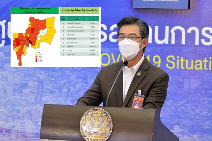 โดยคลัสเตอร์สำคัญในกรุงเทพฯ พุ่งสูง คือ ชุมชนแออัด เขตคลองเตย ,ชุมชนบ่อนไก่ เคหะบ่อนไก่ เขตปทุมวัน,ชุมชนบ้านขิง และห้างสรรพสินค้า เขตบางแค, บริษัทเงินติดลิอ เขตราชเทวี, ชุมชนโมราวรรณ เขตสวนหลวง, ศูนย์การค้างPlatinum เขตราชเทวี, ตลาดสำเพ็ง เขตสัมพันธวงศ์, บ. TQM เขตลาดพร้าว และ ธนาคาร UOB เขตภาษีเจริญ