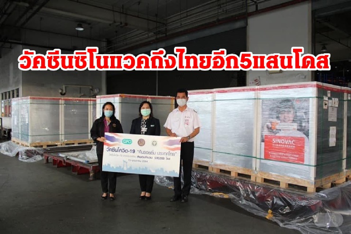 วัคซีนซิโนแวคจากจีนมาถึงไทย อีก 5 แสนโดส