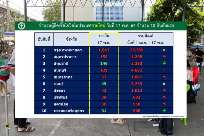 เปิด10จังหวัดติดเชื้อโควิดสูงสุดกทม.นำโด่งวันเดียวพุ่ง1,843ราย