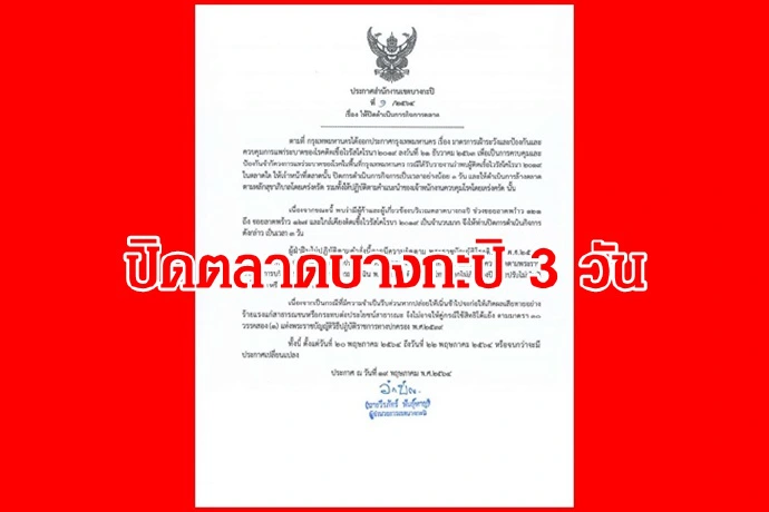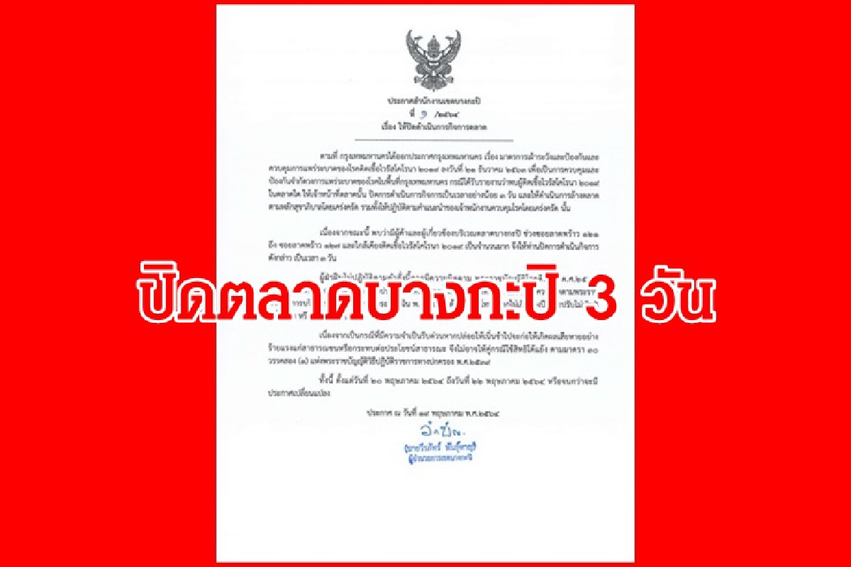 สำนักงานเขตฯ ประกาศให้ปิดตลาดบางกะปิ 3 วัน 20 -22 พ.ค. หลังพบผู้ติดเชื้อโควิดจำนวนมาก ฝ่าฝืนเจอโทษจำคุก-ปรับ