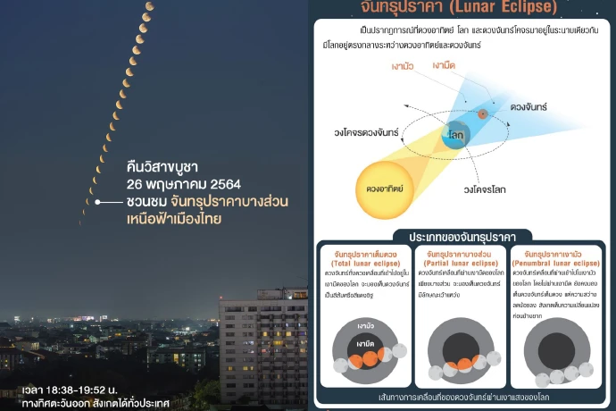 สถาบันวิจัยดาราศาสตร์แห่งชาติ ชวนชมจันทรุปราคาบางส่วนเหนือฟ้าเมืองไทย คืนวิสาขบูชา 26 พฤษภาคม