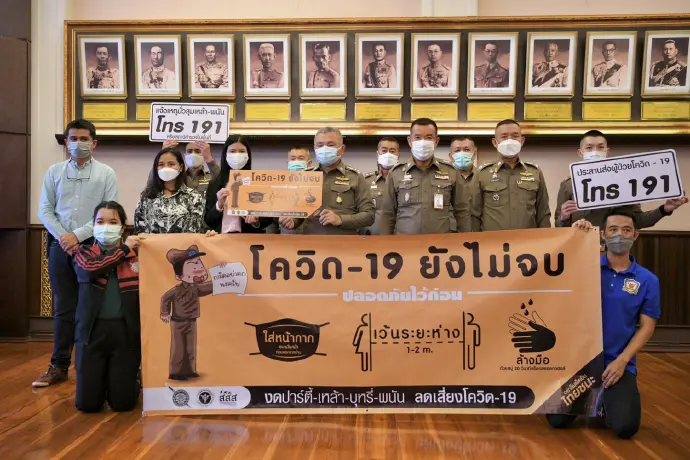 สำนักงานตำรวจแห่งชาติ-สสส.-ภาคีเครือข่ายเร่งรณรงค์ป้องกันภัยโควิด-19 หลังมีกฎหมายให้ใส่หน้ากากอนามัยพร้อมชวนประชาชนเฝ้าระวังแจ้งเบาะแส มั่วสุมตั้งวงเหล้า-พนัน