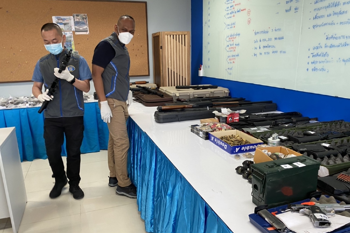 จากกรณีตำรวจกองปราบนำกำลังเข้าตรวจค้นร้านทองแห่งหนึ่งย่านฝั่งธนบุรี และพื้นที่เป้าหมายอื่นๆ รวม 8 จุด ในพื้นที่ กทม.และ ต่างจังหวัด เพื่อกวาดล้างทลายเครือข่ายค้าอาวุธปืนเถื่อนออนไลน์ จนสามารถจับกุมจับกุมตัวผู้กระทำผิดได้จำนวน 3 ราย ประกอบด้วย นายอนพัช รุจิระพัฒน์ อายุ 43 ปี เจ้าของร้านทองแห่งหนึ่งย่านฝั่งธนบุรี นายนฤพล จันทร์นวลอายุ 39 ปี นายสหรัฐ ลพทองคำ อายุ 27 ปี พร้อมตรวจยึดของกลางอาวุธปืนสั้น 41 กระบอก อาวุธปืนยาว 15 กระบอก ในจำนวนนี้มีอาวุธปืนสงคราม 4 กระบอก ระเบิดสังหารชนิด วี 40 จำนวน 14 ลูก และเครื่องกระสุนปืนกว่า 1,000 นัด เมื่อวันที่ 2 มิ.ย. ที่ผ่านมา ตามที่ได้เคยมีการนำเสนอไปก่อนหน้านี้แล้วนั้น
