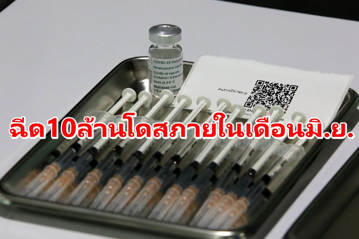 "ขณะนี้มีวัคซีนจำนวน 3.54 ล้านโดส (แอสตร้าเซนเนก้า 2.04 ล้านโดส และซิโนแวค 1.5 ล้านโดส) และจะมีวัคซีนของแอสตร้าเซนเนก้าที่ทยอยส่งมอบไปทุกจังหวัดอย่างต่อเนื่องทุกสัปดาห์ โดยสัปดาห์ที่ 3 ของเดือนมิถุนายนนี้จะมีวัคซีน 8.4 แสนโดส และสัปดาห์ที่ 4 อีก 2.58 ล้านโดส ในภาพรวมตลอดเดือนมิถุนายน จะมีวัคซีน 6 ล้านโดส ซึ่งเป็นไปตามแผนที่ ศบค. กำหนด และคาดว่าในเดือนมิถุนายนนี้ จะฉีดวัคซีนให้กับประชาชนได้ 10 ล้านโดส"อธิบดีกรมควบคุมโรคกล่าว