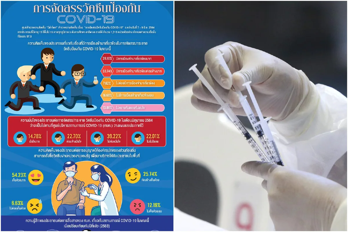 โพลชี้คนไม่มั่นใจรัฐกระจายวัคซีนเชื่อมีการเมืองเกี่ยวข้อง