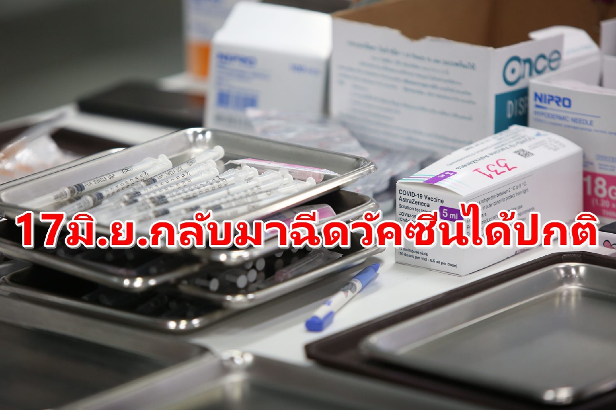 อธิบดีกรมการแพทย์เผยโรงพยาบาลที่แจ้งเลื่อนนัดฉีดวัคซีนจะสามารถกลับมาดำเนินการฉีดได้ปกติตั้งแต่วันที่ 17 มิ.ย.นี้ หลังวัคซีนล็อตใหม่เข้ามาเพิ่ม