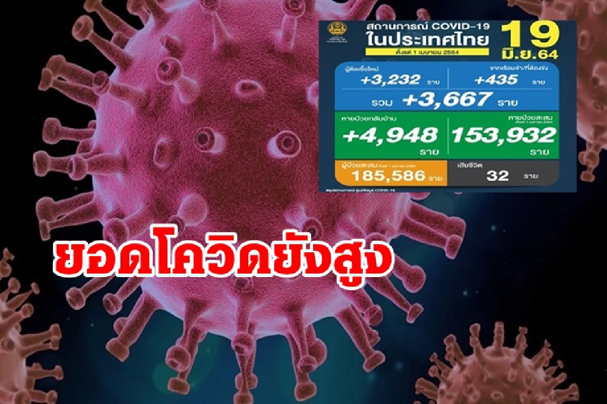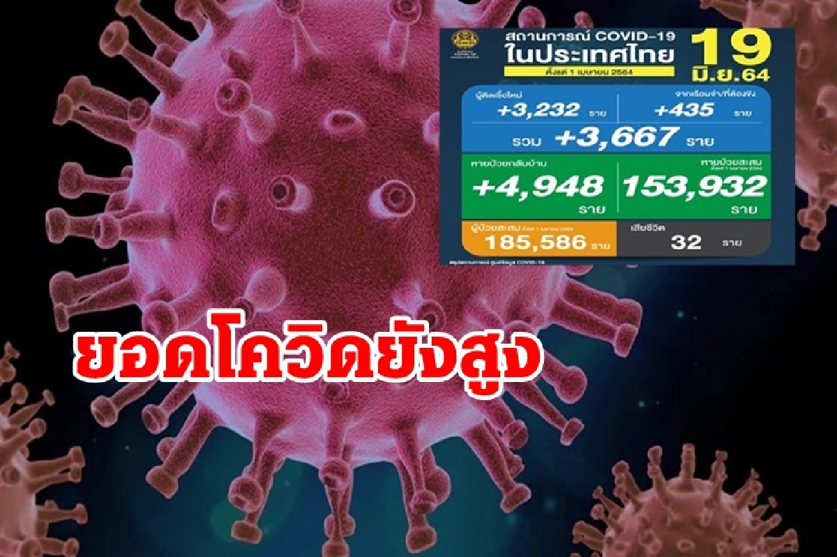 โควิดไทยยอดพุ่ง 3,667 ราย ดับอีก 32