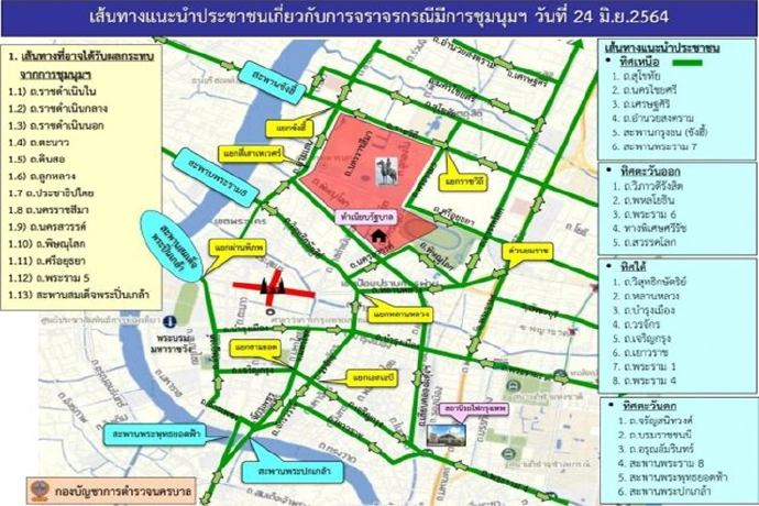 บช.น.แนะ เส้นทางหลีกเลี่ยง ม็อบชุมนุม 24 มิ.ย. อำนวยความสะดวก ประชาชน