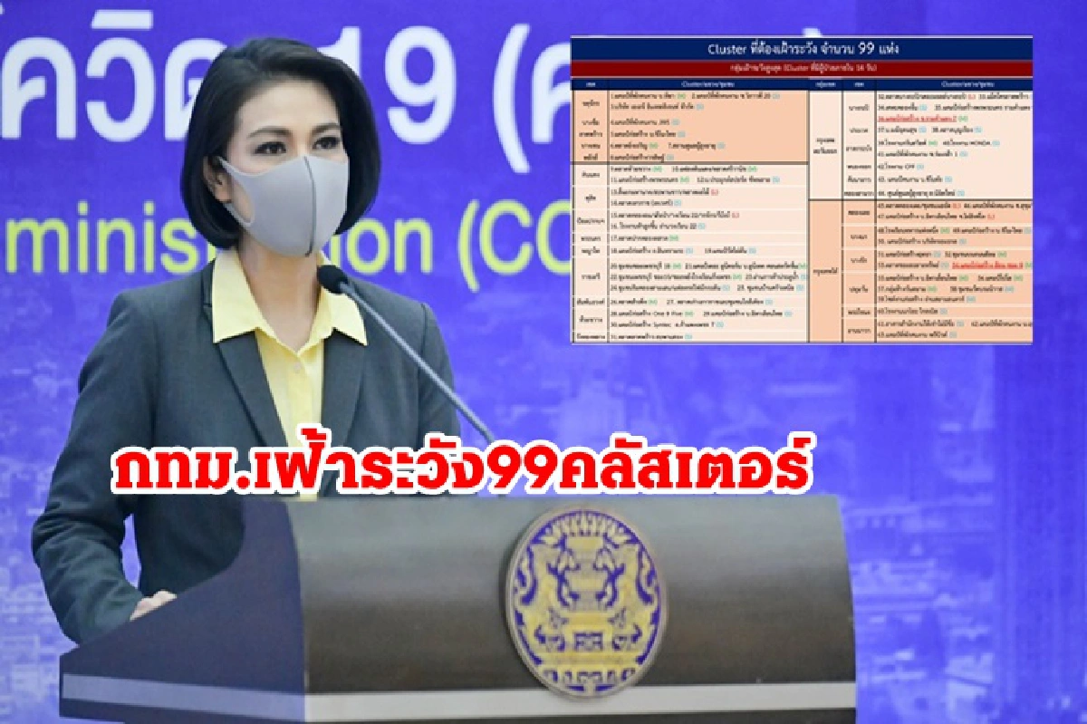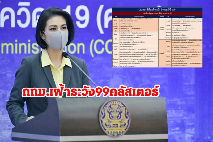 ศบค.เผยกทม.ยังอันดับหนึ่ง ติดเชื้อโควิดสูงสุด กว่าพันราย มีคลัสเตอร์ต้องเฝ้าระวัง 99 แห่งพบคลัสเตอร์ใหม่ 3 จุด ติดเชื้อรวม 455 ราย ขณะที่สมุทรสาคร นนทบุรี ปทุมธานี พบจุดระบาดใหม่รวม 4 แห่ง