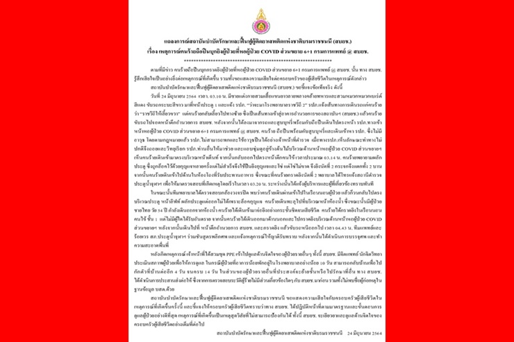 สถาบันบำบัดรักษาและฟื้นฟูผู้ติดยาเสพติดแห่งชาติบรมราชชนนี (สบยช.) ออกแถลงการณ์ เรื่อง เหตุการณ์คนร้ายถือปืนบุกยิงผู้ป่วยที่หอผู้ป่วย COVID ส่วนขยาย 6+1 กรมการแพทย์ @ สบยช. โดยมีเนื้อหาดังนี้