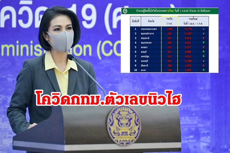 โควิดกทม.ทำนิวไฮอีก ติดเชื้อใหม่ 1.9 พันราย เสียชีวิตรายวัน 34 ราย