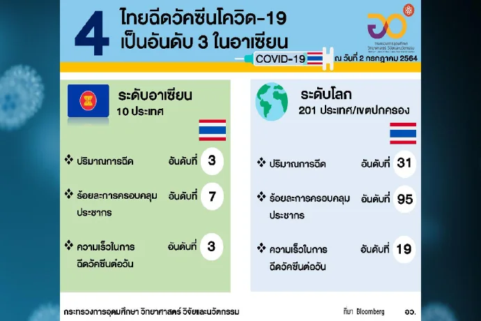 ไทยมีปริมาณการฉีดวัคซีนเป็นอันดับ3 ในอาเซียน