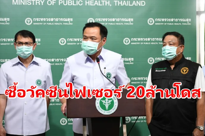 รมว.สาธารณสุขเผยครม.อนุมัติให้กรมควบคุมโรคลงนามสัญญาจัดหาวัคซีนไฟเซอร์ 20 ล้านโดส คาดผู้จำหน่ายจัดส่งให้ได้ช่วงไตรมาส4ปีนี้
