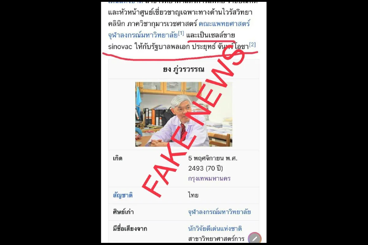 ตำรวจไซเบอร์จับชายวัย 24 ปี เข้าไปแก้ไขข้อมูลของ "ศ.นพ.ยง" ในเว็บไซต์วิกิพีเดีย บิดเบือนว่าเป็น เซลล์ขายซิโนแวคให้รัฐบาลประยุทธ์