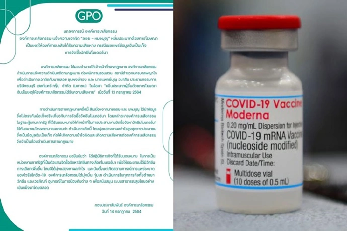 องค์การเภสัชกรรม ขอยืนยันว่า ได้ปฏิบัติภารกิจที่ได้รับมอบหมาย ในการเป็นหน่วยงานภาครัฐที่เป็นตัวแทนจัดซื้อจัดหาวัคซีนทางเลือกโมเดอร์นา เพื่อให้ประชาชนได้มีวัคซีนทางเลือกเพิ่มขึ้น โดยมิได้มุ่งแสวงหาผลกำไร และนับตั้งแต่เกิดสถานการณ์การแพร่ระบาดของไวรัสโควิด-19 องค์การเกสัชกรรมได้มุ่งมั่น ทุ่มเท ดำเนินการในทุกภารกิจทั้งด้านยาวัคซีน และเวชภัณฑ์ อุปกรณ์ในการป้องกันต่าง ๆ เพื่อสนับสนุน ระบบสาธารณสุขไทยอย่างเข้มแข็งมาโดยตลอด