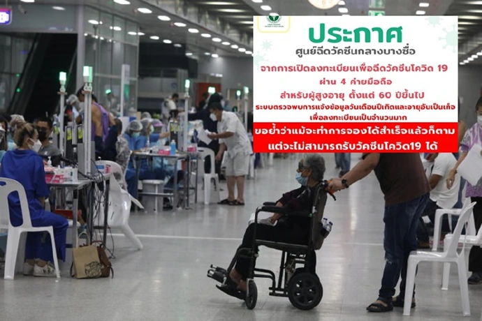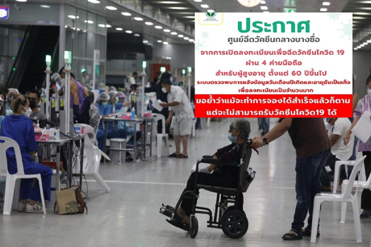 นายแพทย์ไพโรจน์ สุรัตนวนิช รองอธิบดีกรมการแพทย์ เปิดเผยว่า จากการที่ ศูนย์ฉีดวัคซีนกลางบางซื่อ โดยสถาบันโรคผิวหนัง ได้ร่วมกับ 4 ค่ายมือถือเปิดให้ผู้สูงวัย ที่มีอายุตั้งแต่ 60 ปีขึ้นไป สามารถลงทะเบียนเข้ารับการฉีดวัคซีน ได้ที่ช่องทางการลงทะเบียนของ AIS, TRUE, DTAC และ NT ตั้งแต่วันจันทร์ที่ 12 กรกฎาคม 2564 ที่ผ่านมา เพื่อเข้ารับการฉีดวัคซีนได้ตั้งแต่วันศุกร์ 16-31 กรกฎาคม 2564 ช่วงเวลา 9.00 น. – 17.00 น. นั้น ขณะนี้ระบบสามารถตรวจพบการแจ้งข้อมูลเท็จจากการลงทะเบียนเป็นจำนวนมากพอสมควร ดังนั้น จึงขอเรียนแจ้งว่า สำหรับผู้จองคิวที่แจ้งข้อมูลวันเกิดและอายุเป็นเท็จเพื่อรับคิวสำหรับผู้สูงอายุตั้งแต่ 60 ปีขึ้นไป แม้ท่านจะทำการจองได้สำเร็จแล้วก็ตาม แต่ทางศูนย์ฉีดวัคซีนกลางบางซื่อจะไม่สามารถบริการฉีดวัคซีนป้องกันโควิด-19 ให้ท่านได้ เนื่องจากต้องเร่งฉีดให้เฉพาะกลุ่มเป้าหมายคือ 60ปีขึ้นไป เพราะภารกิจหลักตอนนี้คือ การเร่งฉีดวัคซีนให้กับผู้สูงอายุซึ่งเป็นกลุ่มเสี่ยงที่มีอัตราการป่วยรุนแรงและอัตราการเสียชีวิตสูงมากก่อน